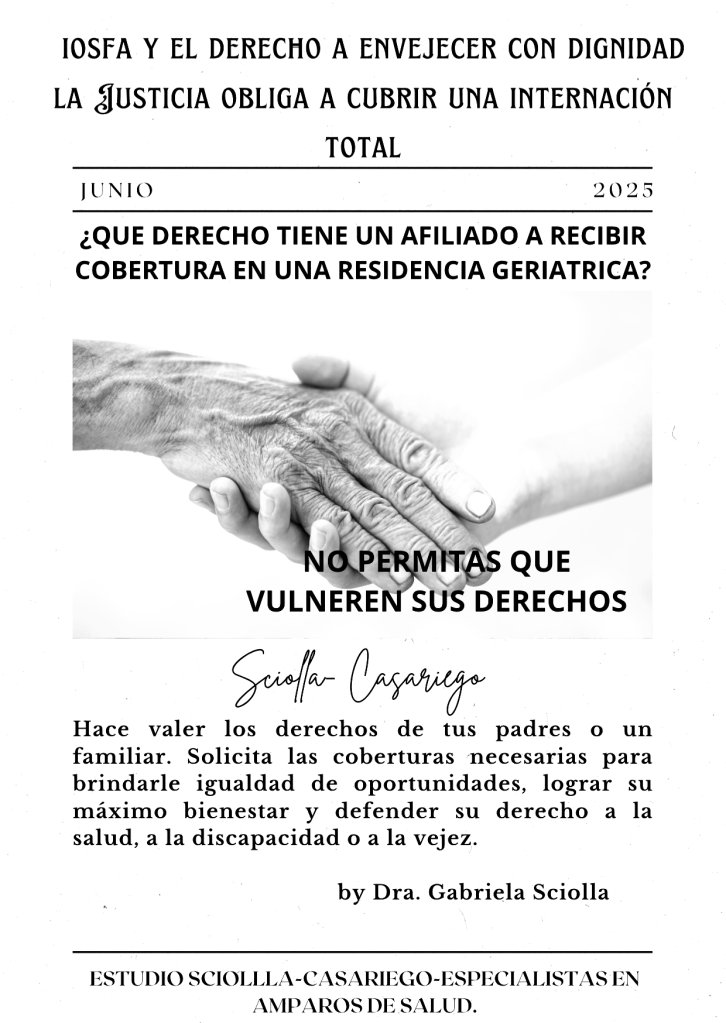 ¿Sabías que si tu familiar necesita internación domiciliaria, la obra social debe cubrir no solo al profesional de enfermería sino también los elementos esenciales como cama ortopédica, colchón antiescaras, silla de ruedas, pañales y asistencia médica integral?