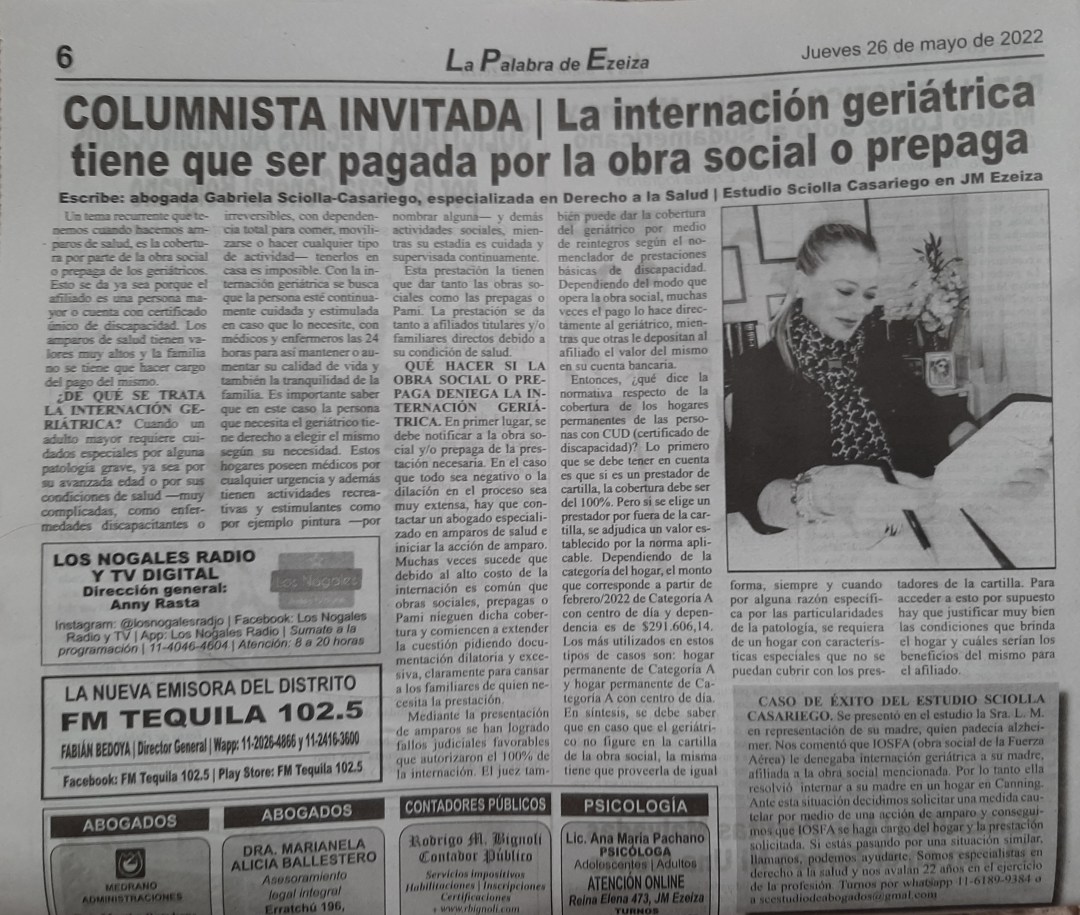Si estás pasando por una situación similar podes contactarnos por whatsapp al 01161899384 o escribirnos a a scestudiodeabogados mail.com. Podemos ayudarte .Nos especializamos en Derecho a la salud .Nos avalan 22 años en el ejercicio de la profesión .