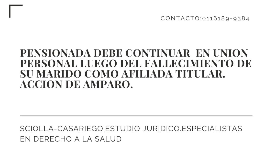 Cabe agregar, que en el caso que si el afiliado principal a una obra social fallece, hay que tener presente que el objetivo que persigue la demandante es recuperar su condición de afiliada a la obra social Unión Personal, ahora como titular, de conformidad con lo dispuesto por el art. 10 inciso h) de la ley 23.660.