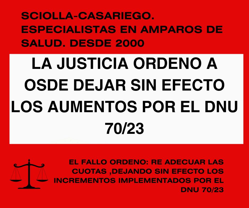 Así, como comenzamos, la nota y conforme al reclamo masivo de Acciones de Amparo, con respecto al desmedido aumento de prepagas, en la provincia de Misiones por el exceso de facturación, salió una medida cautelar contra OSDE donde ordenan dejar sin efecto los aumentos y retrotraerlos al mes de Diciembre de 2023.Lo cual nos abrió una puerta muy importante, donde todo afiliado de OSDE puede adherir a la misma, presentando un Recurso individual.
